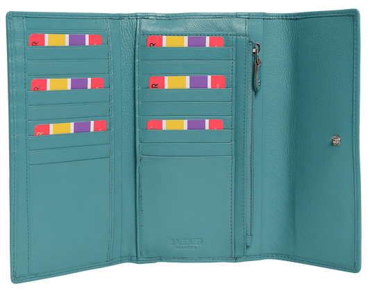 SADDLER ELLA Leather 18cm Trifold Purse - 20 Card Slots, Several Coin and Note Sections - RFID Protected
